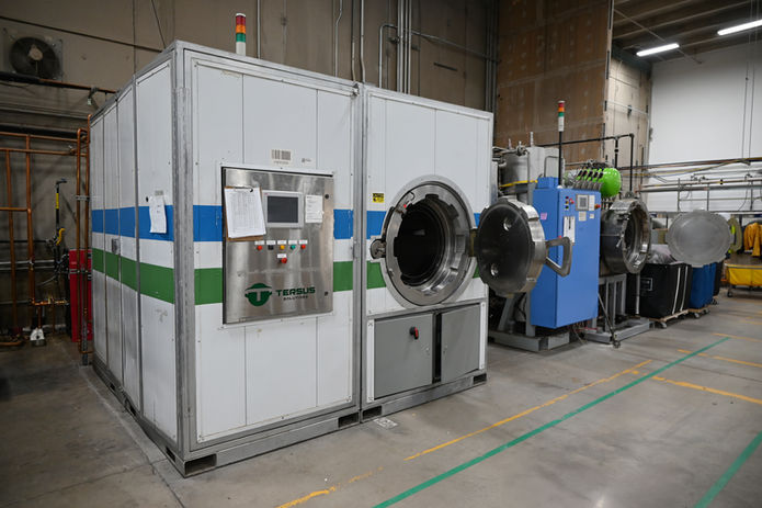 We run the cleaning cycle using CO₂, eliminating the need for water and dryers.